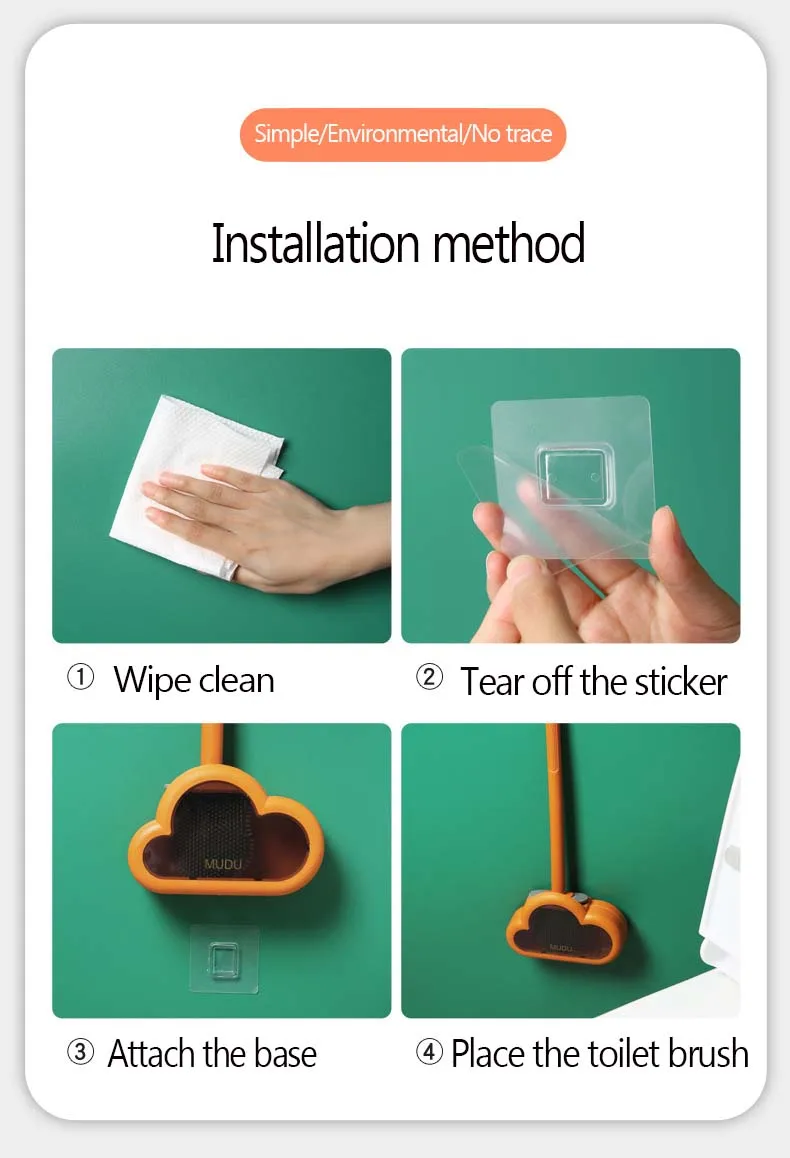 4. Wall-mounted toilet brush punch free installation, simple and convenient